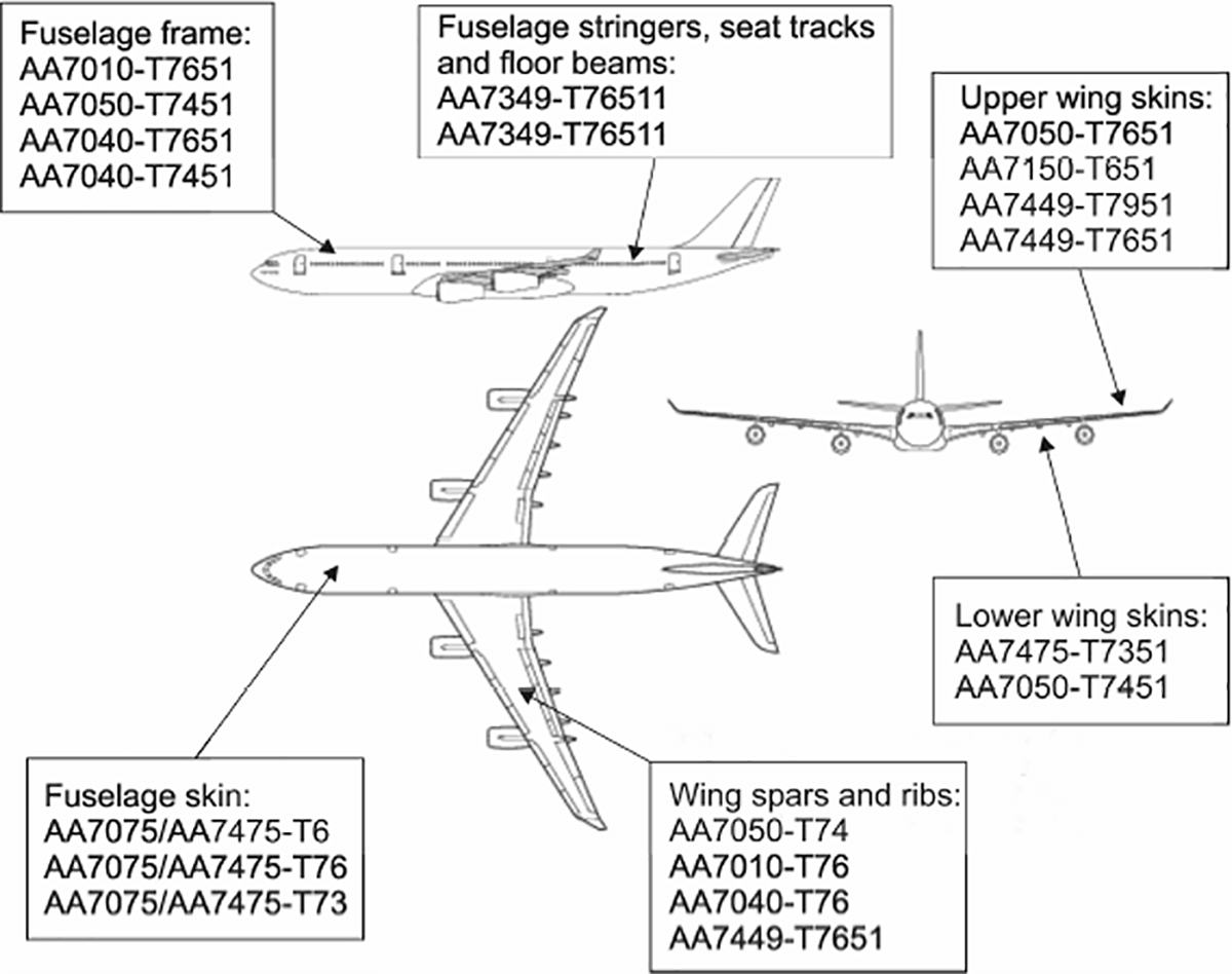 | Fuselage skin | 2024-T3,7075-T6,7475-T6 |